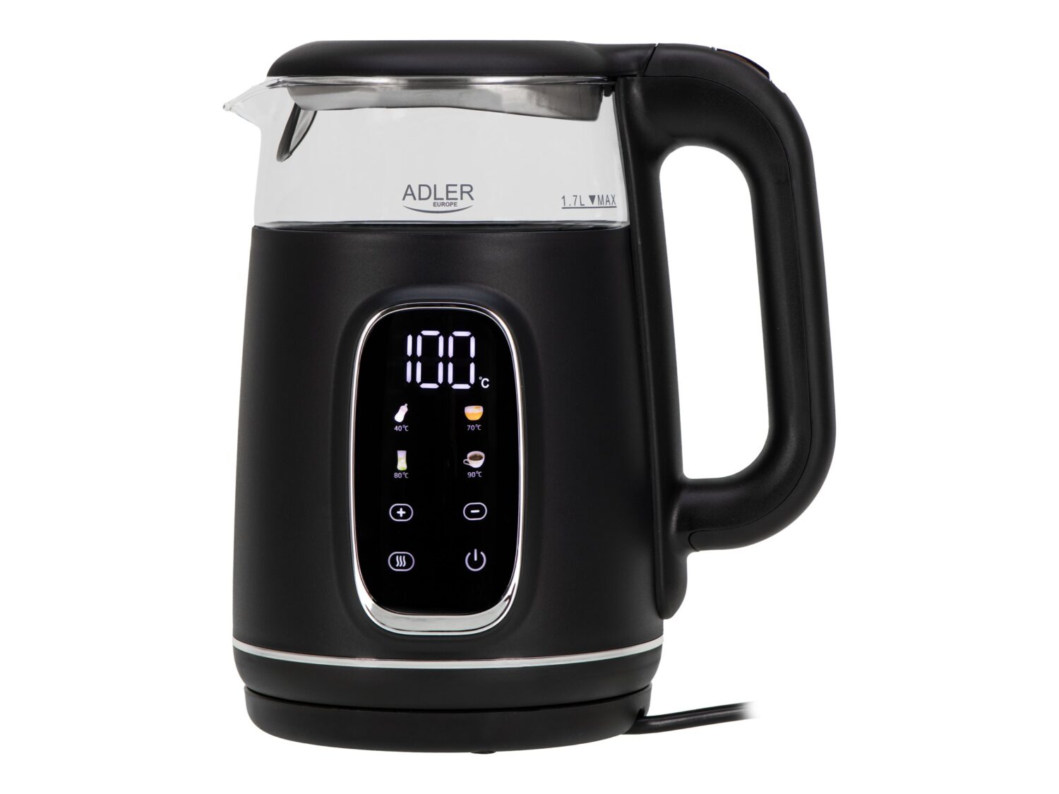 Adler Kettle with LED Display | AD 1305 | Electric | 2200 W | 1.7 L | Plastic | 360° rotational base | Black/Silver