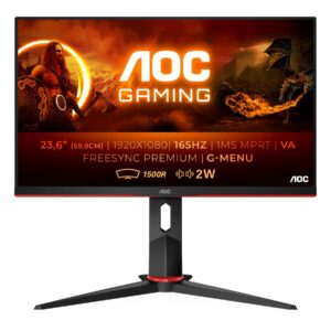 AOC | Curved Gaming Monitor | C24G2AE/BK | 23.6 ” | VA | FHD | 16:9 | 165 Hz | 1 ms | 1920×1080 | 250 cd/m² | HDMI ports quantity 2 | Black/Red | Warranty 36 month(s)