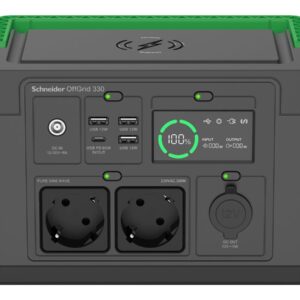 Schneider Electric Schneider OffGrid Portable Power Station 330, 230V, 332Wh Lithium-ion, LCD, 2 CEE 7/3 Schuko outlets, Sinewave, 3 USB-A, 1 USB-C, Wireless Charger | PPS330-GR