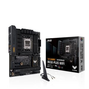 Asus | TUF GAMING B650-PLUS WIFI | Processor family AMD | Processor socket AM5 | DDR5 DIMM | Memory slots 4 | Supported hard disk drive interfaces SATA, M.2 | Number of SATA connectors 4 | Chipset AMD B650 | ATX