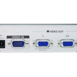 | Muud funktsioonid | One video input to 2 video outputs; Cascadable to 3 levels – provides up to 8 video signals; Supports 350 MHz bandwidth; Long-distance transmission – up to 30 m; Superior video quality – 1920 x 1440@60Hz; DDC, DDC2, DDC2B Compatible (Port 1 only); Supports VGA, XGA, SVGA, UXGA,WUXGA and multisync monitors |