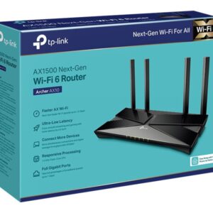AX1500 Wi-Fi 6 Router | Archer AX10 | 802.11ax | 1201+300 Mbit/s | 10/100/1000 Mbit/s | Ethernet LAN (RJ-45) ports 4 | Mesh Support No | MU-MiMO Yes | No mobile broadband | Antenna type 4xExternal