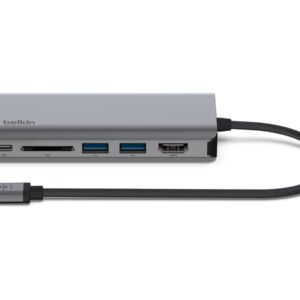 | Omadused | Connect a USB-C laptop to multiple devices; Expands USB-C port into an HDMI port, 2 USB-A 3.0 BC1.2 ports, Gigabit Ethernet port, SD card reader, and USB-C PD port; Power and charge high-power consumption devices like hard drives, phones, and tablets with the USB-A 3.0 BC1.2 ports; Supports pass-through charging up to 100W; Compact design gives easy mobility and reduces desktop clutter; 5 Gbps of bandwidth for quick data transfer between computer and peripherals; HDMI port supports up to 4K resolutions at 30Hz |