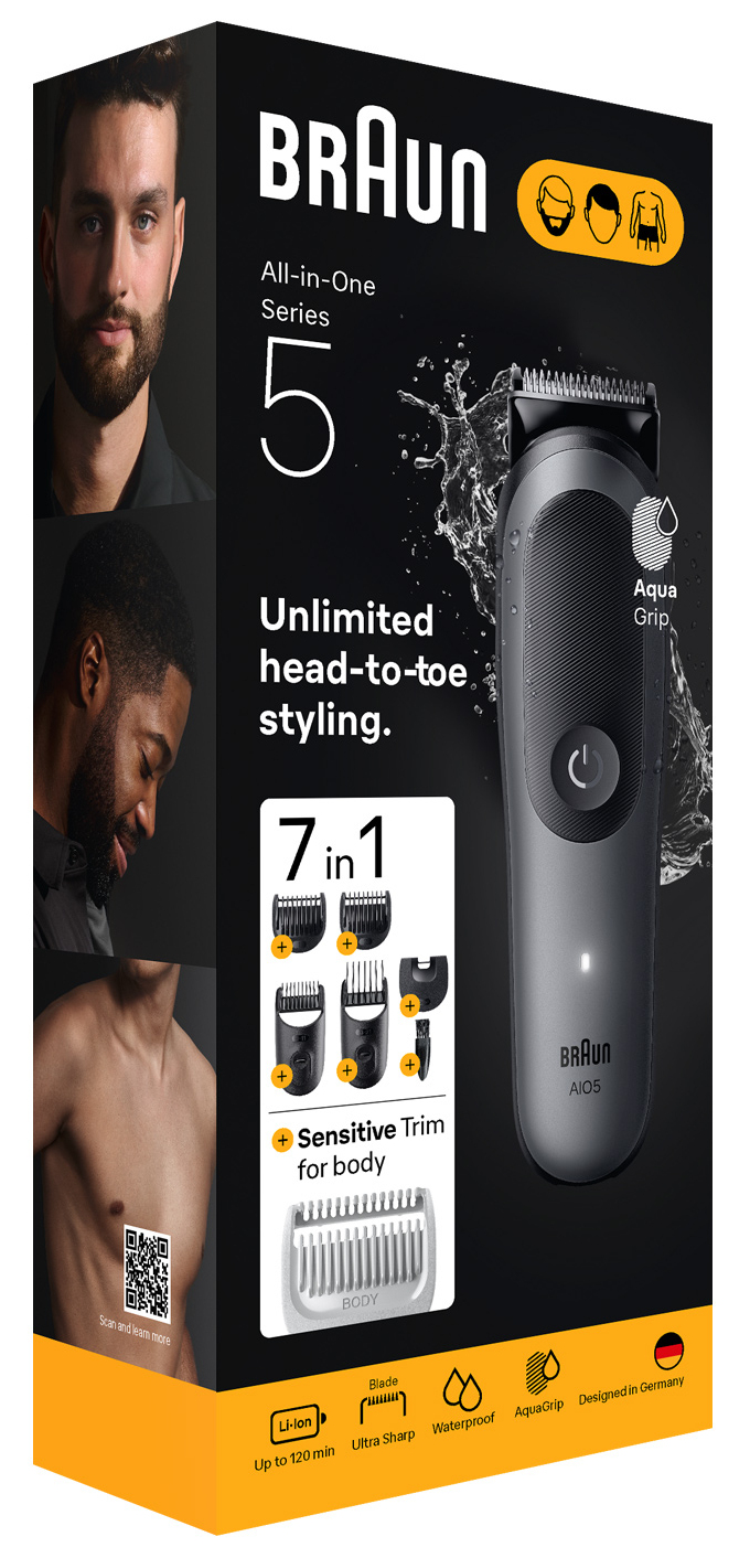 Braun 7-in-1 Grooming Kit | All-in-One Kit Series 5 AIO5520 | Cordless | Number of length steps 14 | Black