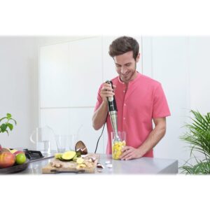 | Muud funktsioonid | ActiveBlade Technology: flexible shaft for finer blending results; Speed regulation: Intuitive, seamless Advanced SmartSpeed button; PowerBell Plus Technology: SplashControl + extra milling blade for efficent blending results; EasyClick system: quick & easy change of accessories |