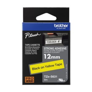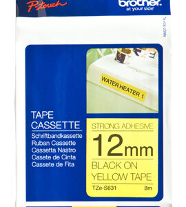 Brother | TZe-S631 Strong Adhesive Laminated Tape | Black on Yellow | TZe | 8 m | 1.2 cm