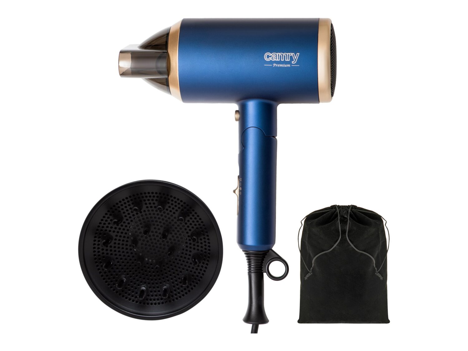 Camry | Hair Dryer | CR 2268 | 1800 W | Number of temperature settings 2 | Ionic function | Diffuser nozzle | Blue/Gold