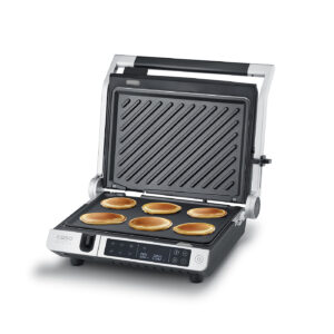 | Eritunnused | 5-in-1 multifunction: Contact grill, Panini press, Full grill, Half grill plate, and XXL table grill; Manually adjustable temperature from 80-240°C and timer up to 60 minutes; Digital touch control panel with convenient program selection (Burger, Panini, Poultry, Meat, Fish, Vegetables) |
