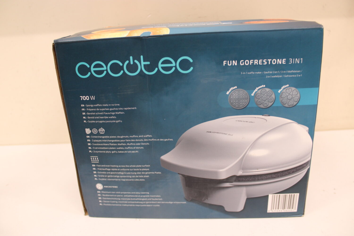 Cecotec Waffle Maker | Fun Gofrestone 3in1 | 700 W | Number of pastry 3 | Waffle/Muffin/Donut | White | MISSING DOUGHTSNUTS INTERCHANGEABLE PLATE