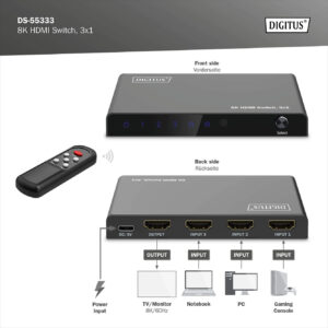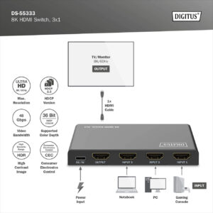 Digitus 8K HDMI Switch, 3×1 | DS-55333 | Black
