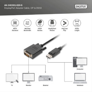 Digitus Adapter Cable, DP – DVI | DisplayPort | 2 m