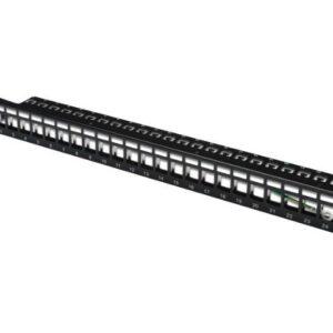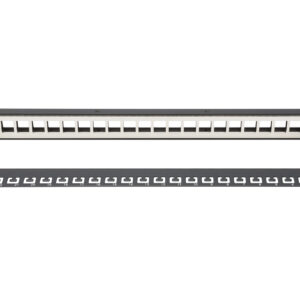 Digitus | Modular Patch Panel | DN-91411 | Black | Layout Keystone Entry: Straight; Area of application: 483 mm (19″) cabinet; Suitable for 483 mm (19″) cabinet mounting; Housing material: 1.5 mm SPCC cold rolled stell sheet, powder-coated; Ports: 24