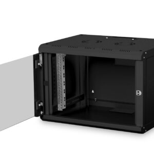 Digitus | Wall Mounting Cabinet | DN-19 07-U-SW | Black | IP protection class: IP20; Front door: Glass door, single opening; Cabinet type: Wall mounting cabinet; Equipment mounting depth min.-max.: 305-370 mm; Load capacity: 100 kg; Dimensions 420 x 600 x 450 mm,