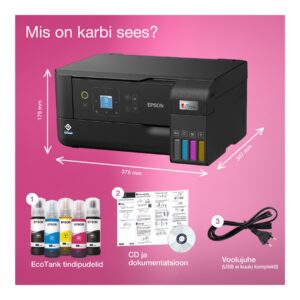 | Muud funktsioonid | Ultra-low-cost printing; Up to 66 cartridges in one set of inks; Hassle-free ink tank system; Epson Smart Panel app |