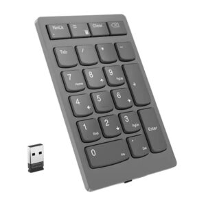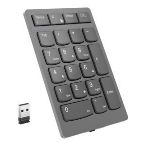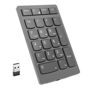 | Tehnilised omadused | Go beyond the limitations of your notebook and complement your workflow with a tactile, responsive 21-key keypad that sports premium scissor-switch keys and is compact enough to take on the go. With an impressive up to 3 months of battery life and a powerful 2.4 GHz wireless connector, you can rest easy knowing that your numeric keypad will be ready for action whenever you are. 21-key numeric keypad Industry leading scissor switch keys Dedicated productivity keys (Calculator, Tab, Equal, Esc keys) Minimalist design with ultra slim profile at 13 mm Rechargeable , up to 3 months use in single charge (may vary based on usage) Supports Lenovo Unified Pairing Receiver |