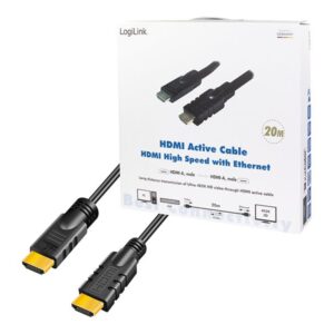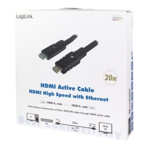 Logilink, CHA0020, 20m, Active, HDMI cable, type A male, – HDMI type A male, black. | Logilink | HDMI to HDMI | 20 m