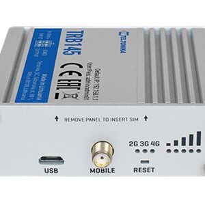 LTE Gateway: No WiFi, 4G, SIM, R485 port, Micro USB | LTE Gateway | TRB145 | No Wi-Fi | Ethernet LAN (RJ-45) ports 0 | Mesh Support No | MU-MiMO No | 2G/3G/4G | Antenna type 1 x SMA for LTE | 1 x Virtual network interface via micro USB
