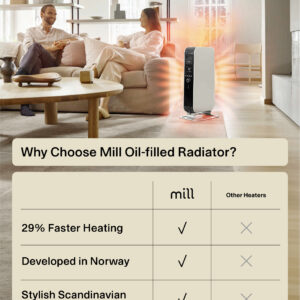 | Eritunnused | Compared to ordinary oil filled radiators, our Mill Oil series are much more effective because of the closed structure of the heater which makes a unique chimney effect (patented “Heat boost” technology). For instance, our Mill Oil 1000W is as effective as a normal oil filled radiator with 2000W. |