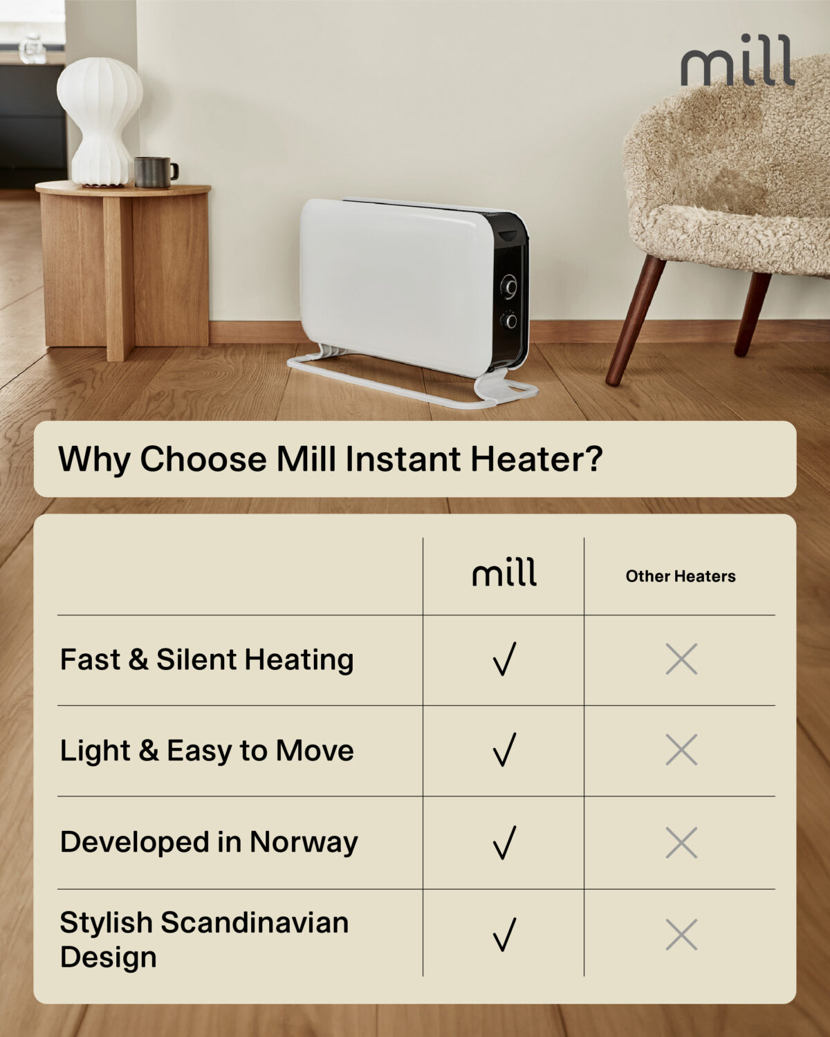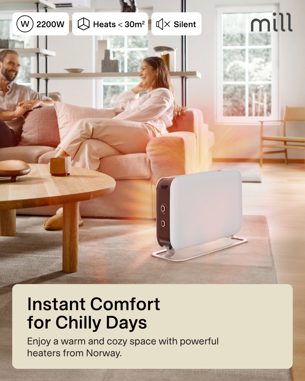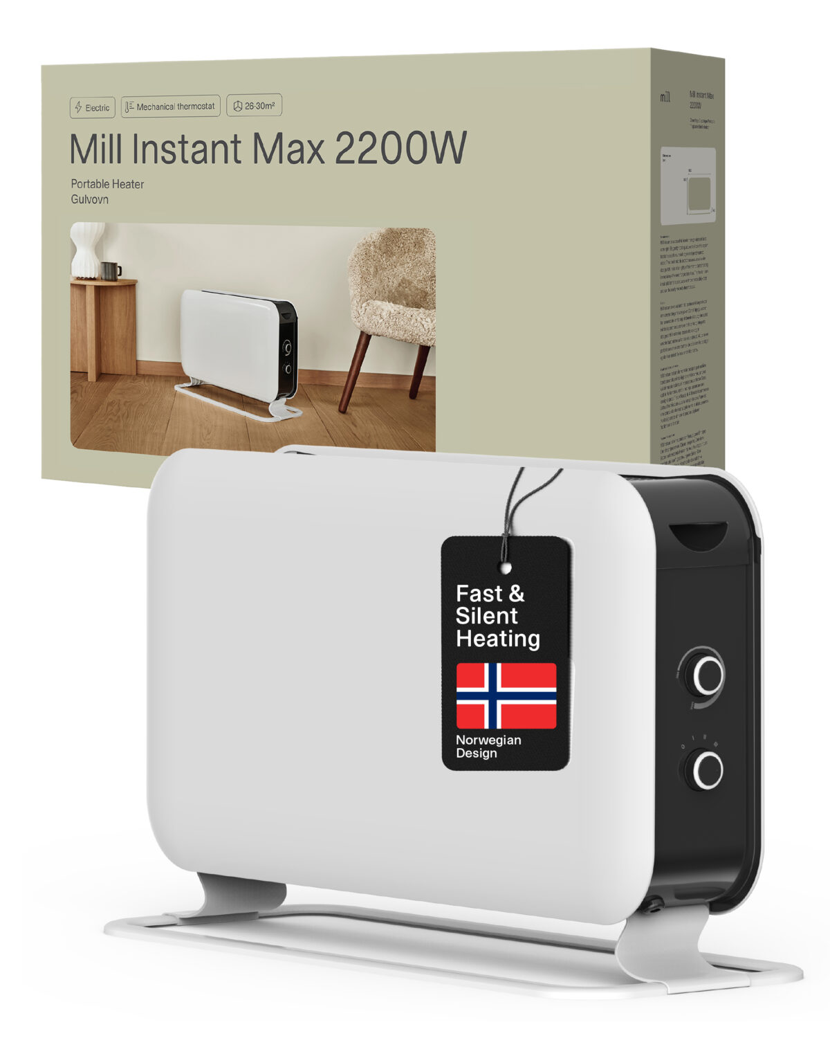 Mill | Heater | CO2200MECMAX | Convection Heater | 2200 W | Number of power levels 3 | Suitable for rooms up to max 30 m² | White