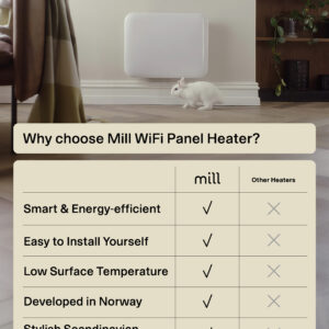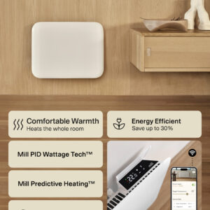 | Eritunnused | Connectivity: WiFi 2.4 Ghz (WiFi 6). Zigbee 3.0; LED Display for easy reading; Fast and even distribution of heat in the whole room; Low energy control; Mill PID Wattage Tech; Mill Predictive Heating; Open Window Function; Silent operation |