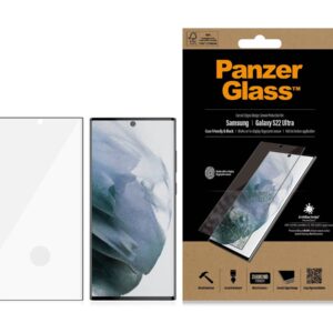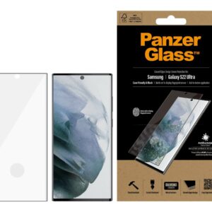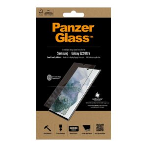 PanzerGlass | Samsung | Galaxy S22 Ultra | Tempered glass | Black | Case friendly. Compatible with ultrasonic fingerprint sensor. 100 % touch sensitivity. Antibacterial (ISO 22196 certified & JIS 22810 approved) | Screen Protector