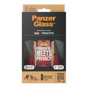 PanzerGlass | Screen protector | Apple | iPhone 15 Pro | Glass | Black | Ultra-Wide Fit w. EasyAligner