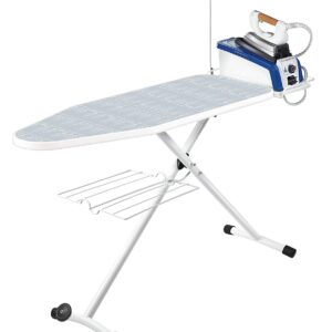 | Muud funktsioonid | Professional ironing table with reinforced work surface and cotton cover rest boiler and slatted base for clothes. Rolling set for transporting the table from one room to another without difficulty. Asta for the ironing station cable and system security anti opening / closing. |