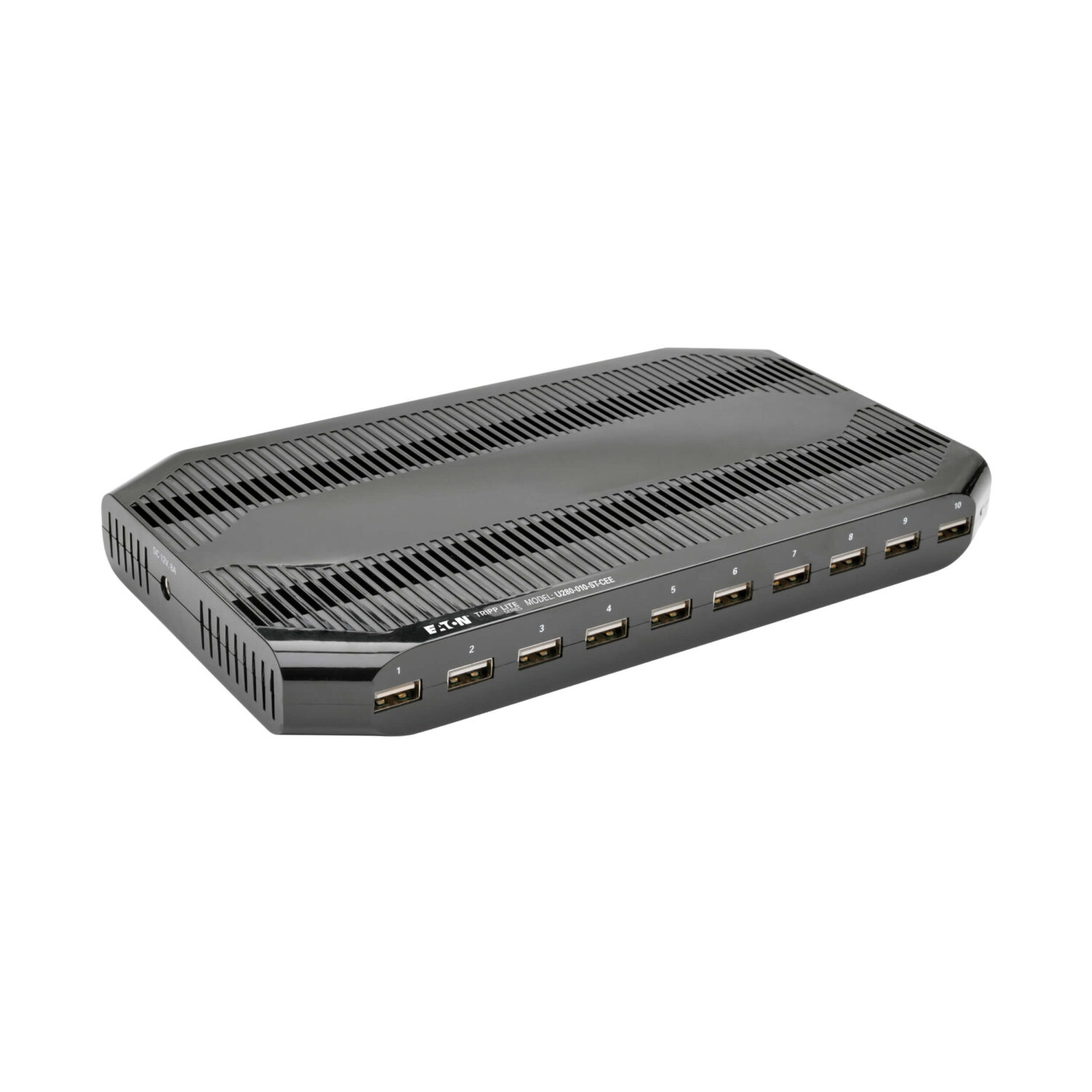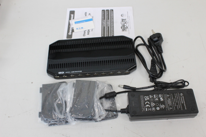 | Muud funktsioonid | Up to 5V 2.4A per port for charging battery-intensive devices; All ten ports support USB Battery Charging (BC) specification v1.2; External dual-voltage power supply with Schuko plug; Protects against overheating, overcurrent and overcharging; Includes 14 adjustable storage brackets for organizing devices; Charges anywhere AC power is available—no computer required (for 120V applications please use Tripp Lite's P013-Series cables, not included) |